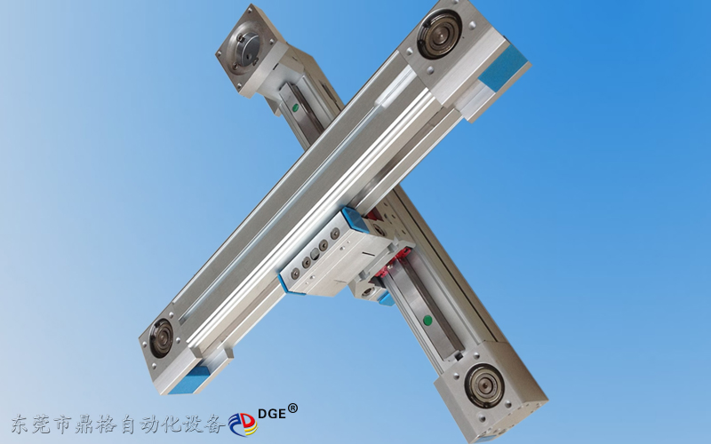 產(chǎn)品介紹 鼎格 DGE-60-TB-EG 同步帶十字滑臺,鋁合金缸體64*64mm,X軸有效行程最長6000mm,Z軸的有效行程500-800mm為最佳,水平負(fù)載能力1kg-60kg,垂直負(fù)載能力1kg-3kg,Z軸垂直使用不建議使用同步帶滑臺,有輕微的負(fù)載或運(yùn)行速度較快,方可采用同步帶滑臺作Z軸使用,傳動精度高達(dá)±0.1mm(行程1米以內(nèi)的精度),最高傳動速度5000mm/s(加減速時間200毫秒=0.2秒),同步輪20齒, 同步帶寬25mm,同步帶導(dǎo)程5M,同步輪轉(zhuǎn)一圈100m,同步輪出軸Φ15mm,滑臺總長度=有效行程+569mm,自身重量KG=6.98+0.81×行程(如行程1000mm=0.81×10)+1.8+0.82,滑臺相關(guān)配件:上銀碳鋼直線導(dǎo)軌,德國馬牌同步帶,NSK防水防塵軸承,可根據(jù)客戶行程要求設(shè)計定制.